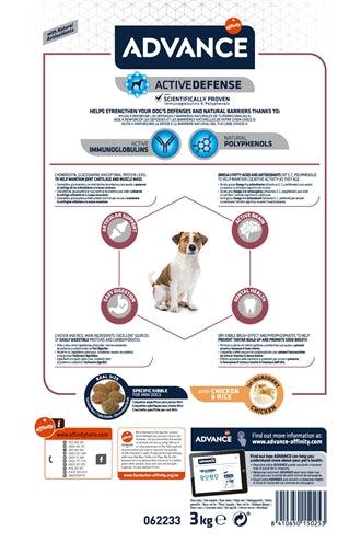 Advance Mini Senior hondenbrokken zijn speciaal ontwikkeld voor oudere honden van kleine rassen vanaf 8 jaar. Deze complete voeding bevat licht verteerbare ingrediënten zoals kip en rijst, wat bijdraagt aan een gezonde darmwerking. Het voer is verrijkt met omega-3-vetzuren om een glanzende vacht, gezonde huid en cognitieve functies te ondersteunen. Daarnaast helpt een optimaal eiwitgehalte om spiermassa te behouden, terwijl glucosamine en chondroïtinesulfaat bijdragen aan het behoud van gezonde gewrichten. De brokjes zijn aangepast aan de kaakgrootte van kleine honden en helpen tandplak te verminderen. Bovendien is het voer verrijkt met taurine voor een goede hartfunctie.