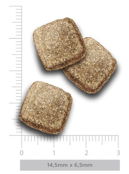 białko surowe 27,00%, tłuszcz surowy 16,00%, kwasy tłuszczowe omega 3 3,00%, kwasy tłuszczowe omega 6 1,20%, włókno surowe 4,50%, popiół surowy 8,00%, wapń 1,35%, fosfor 1,00%. Energia metaboliczna 3,675 kcal/kg