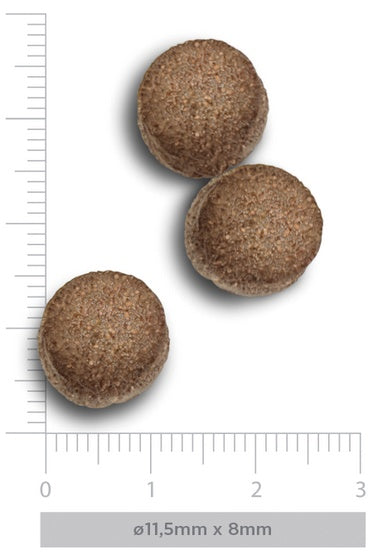 Drobne granulki – dostosowane do potrzeb szczeniąt dużych ras, ułatwiają gryzienie i trawienie.