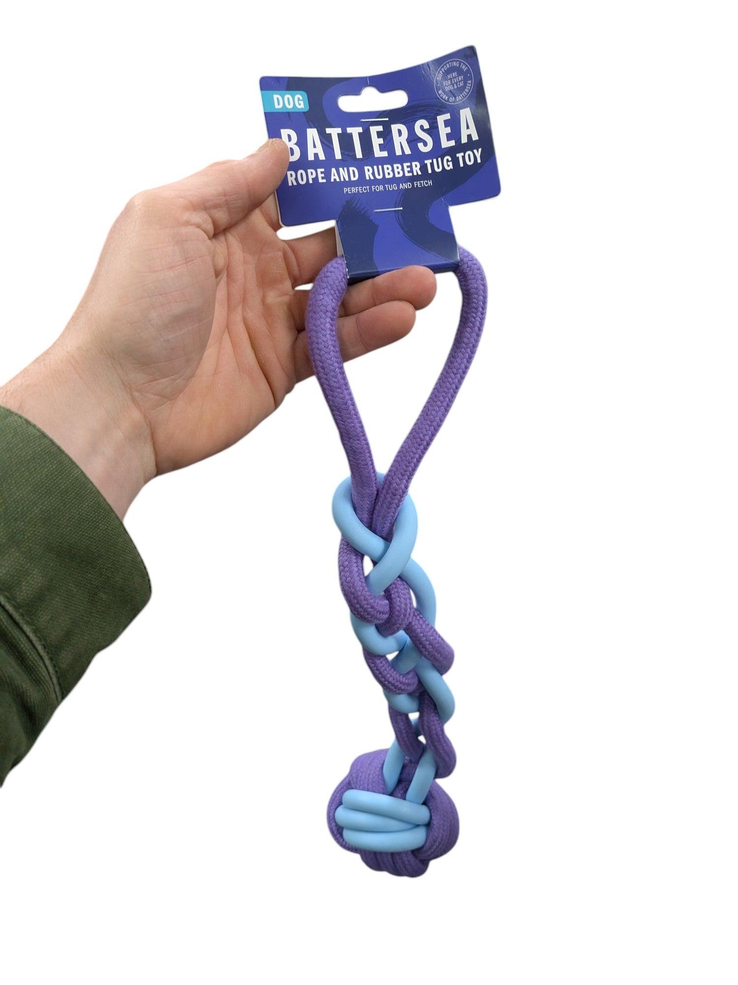 The Battersea Rope/Rubber Tug Blue is perfect for medium to large dogs who enjoy interactive play and chewing. Ideal for both indoor and outdoor use.
