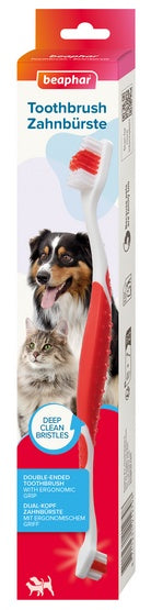 Beaphar szczoteczka do zębów, w połączeniu z pastą do zębów to produkty oferujące optymalną ochronę zębów psa. Wcześnie formująca się płytka nazębna musi być usuwana, aby zapobiec brzydkiemu zapachowi i próchnicy zębów. Dwugłowicowa Szczoteczka Beaphar może być używana przez wszystkie psy różnych rozmiarów. Szczoteczka jest specjalnie ukształtowana tak, aby możliwie jak najlepiej przystosowywała się do zębów psa. Poszczególne rzędy włosia pozwalają wyczyścić wszystkie zęby oraz przestrzenie międzyzębowe, dlatego problem z dotarciem do trudno dostępnych miejsc nie istnieje. Gumowany, wzmocniony uchwyt pozwala na bezpieczną obsługę i prowadzenie szczoteczki. Ponadto miękkie i elastyczne włosie zapewnia dokładne czyszczenie zębów i delikatną pielęgnację wrażliwych dziąseł.