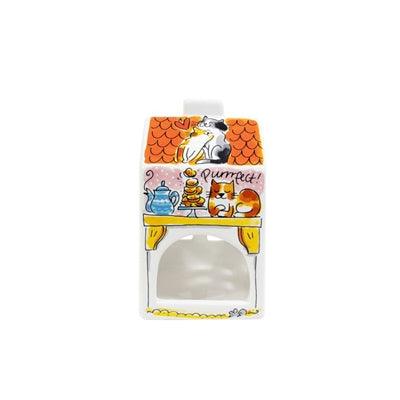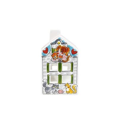 Het Blond Amsterdam Lichthuisje Kat 8X8X14 cm is een schattig felgekleurd theelichthuisje met rondom kattenprint dat met een waxinelichtje zorgt voor een sfeervol licht. Het huisje is gemaakt van aardewerk en is 14 centimeter hoog. Door de raampjes wordt de kamer sfeervol verlicht. De schoorsteen, kattenprint in Blond Amsterdam-stijl en teksten als "Home is where my cat is", maken dit lichthuisje de perfecte toevoeging in het huis van elke kattenliefhebber!