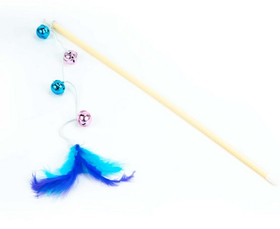 Rozbudź instynkt łowcy u swojego kota dzięki wędce z dzwoneczkami i kolorowym piórkiem! Lekka, plastikowa rączka i sprężysta gumka zakończona barwnymi piórkami z dzwoneczkami zapewniają dynamiczną i angażującą zabawę. Piórka i dzwonki są w odcieniach różu i niebieskiego. To idealny sposób na wspólne spędzanie czasu i aktywizację kota.