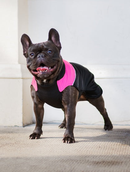 Ściągacze oraz miękki kołnierz sprawiają, że kubrak idealnie dopasowuje się do sylwetki psa, nie krępując jego ruchów.