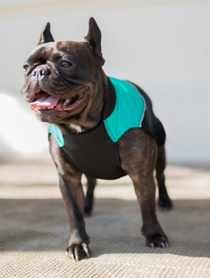 Ściągacze oraz miękki kołnierz sprawiają, że kubrak idealnie dopasowuje się do sylwetki psa, nie krępując jego ruchów.