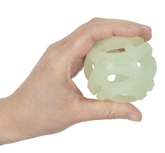 • Świeci jasnozielonym światłem, co ułatwia zabawę wczesnym rankiem lub wieczorem, przedłużając zabawę w aportowanie w warunkach słabego oświetlenia.