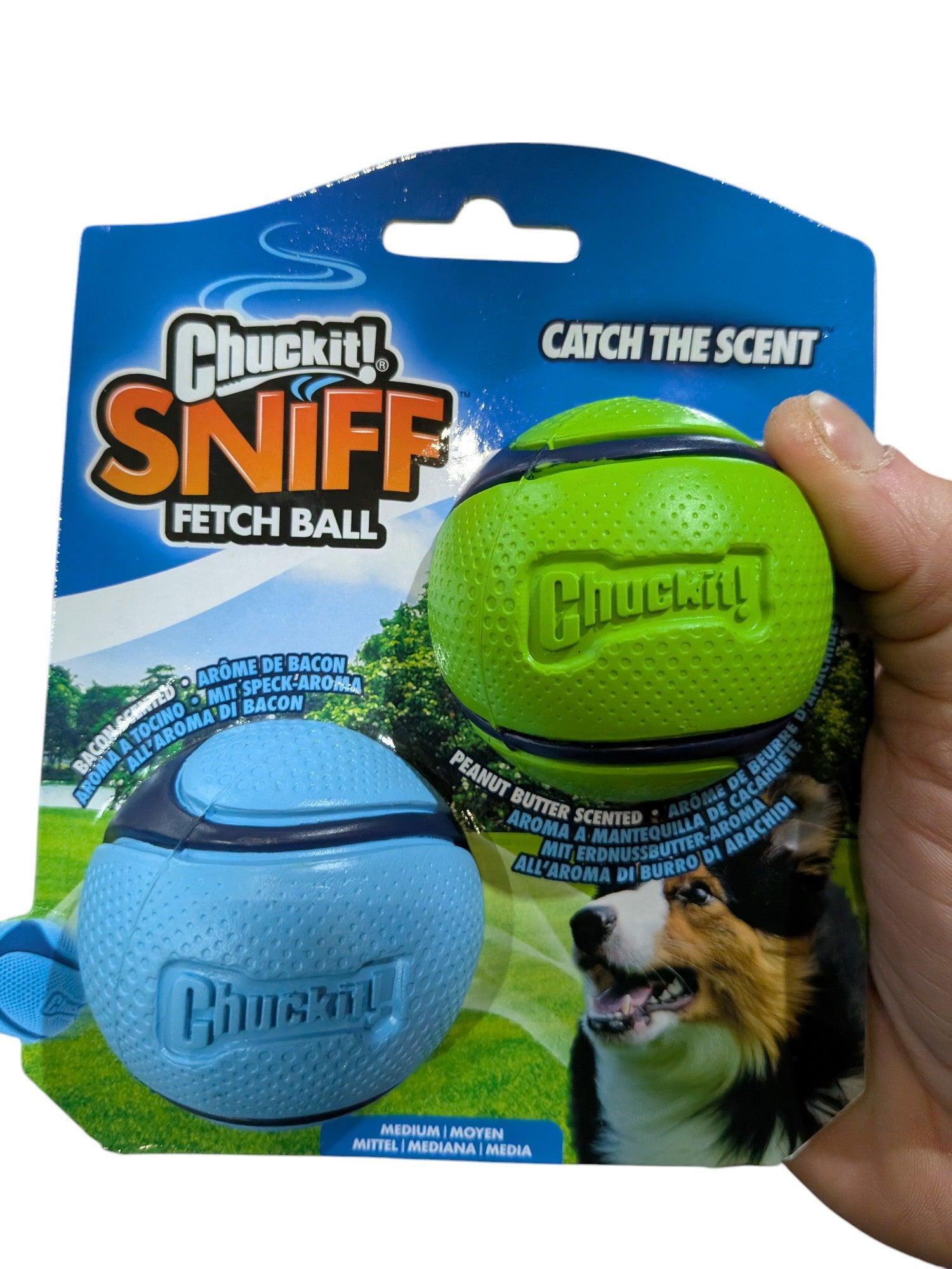 De Chuckit Sniff Fetch Bal Combo maakt apporteren nóg leuker met een onweerstaanbare geur van pindakaas en gebakken spek. Deze ballen trekken de aandacht van jouw hond door hun heerlijke geur, waardoor ze nog makkelijker terug te vinden zijn tijdens een apporteerspel. Dankzij de hoge stuiter en het duurzame, natuurlijke rubber blijven de ballen lang meegaan en bieden ze eindeloos speelplezier.