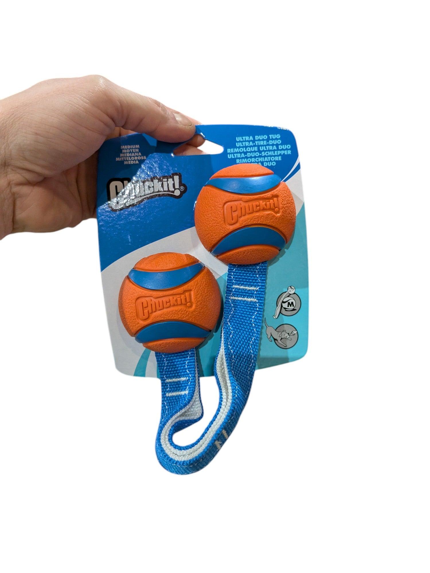 De Chuckit Ultra Duo Tug is het perfecte interactieve speeltje voor honden die dol zijn op apporteren, trekken en ravotten. Dit unieke ontwerp combineert twee stevige Chuckit Ultra Ballen, verbonden door een sterk werpkoord, waardoor je veelzijdige speelsessies kunt creëren.