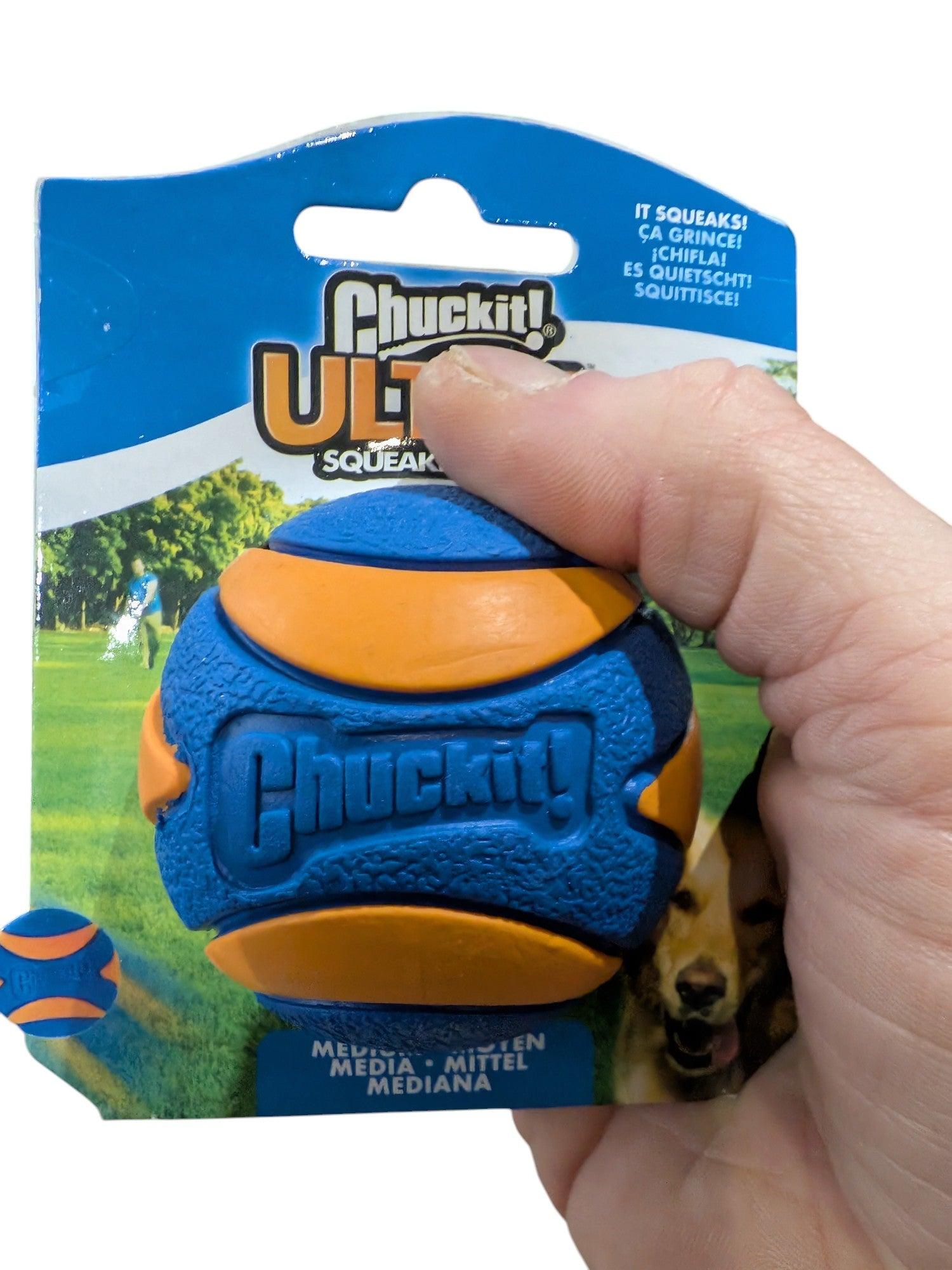 De Chuckit Ultra Squeaker Bal is de ultieme combinatie van duurzaamheid, stuiterkracht en geluidseffecten. Gemaakt van hoogwaardig natuurlijk rubber, is deze bal ontworpen om hoog en onvoorspelbaar te stuiteren, wat het extra spannend maakt voor apporteerspelletjes. Daarnaast bevat de bal een ingebouwde pieper, wat het speelplezier vergroot en je hond nog meer motiveert om ermee te spelen.
