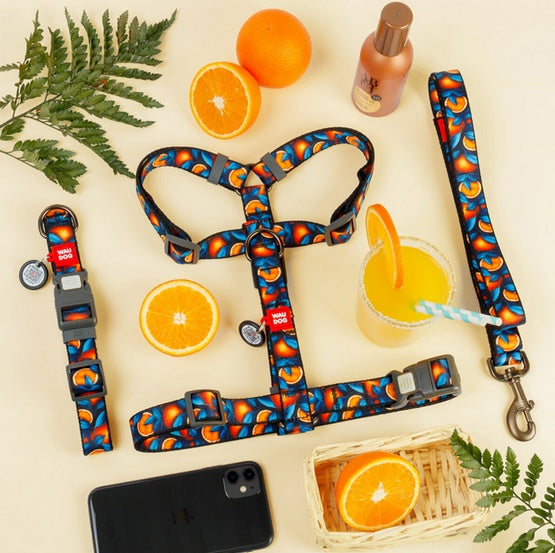 Collar WauDog Nylon Obroża nylonowa z QR-paszportem, plastikowy fastex, wzór POMARAŃCZE, 20mm/28-40cm