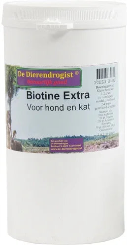 In addition to biotin (2000 mg/kg), Biotine Extra contains herbs that naturally have a high sulfur content, such as dandelion, marigold, stinging nettle, fenugreek, seaweed, garlic, and rosemary.