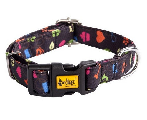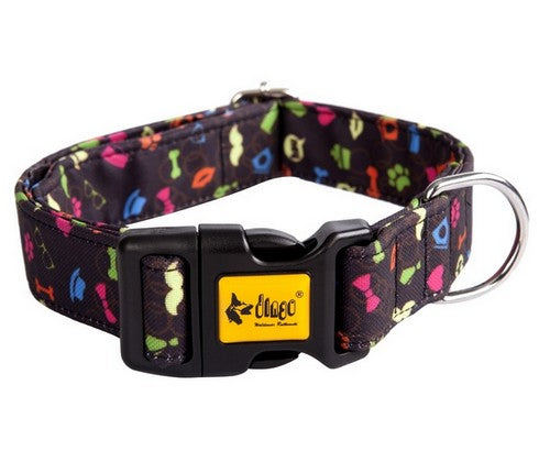 Regulowane obroże dla psa AMERICA są wykonane z drukowanego wodoodpornego materiału. Wielokolorowe obroże w modne i wyraziste wzory są odporne na ścieranie. Obroża została wyposażona w wygodne i solidne zapięcie typu klik-klak, które jest wykonane z wysokiej jakości, odpornego na trudną pogodę plastiku. Do zapięcia smyczy służy metalowe kółko, które zostało pokryte chromem. Dzięki temu po kontakcie z wodą nie zardzewieje.
