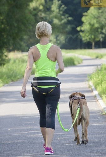 Do pasa pasują smycze Dingo z amortyzatorem (brak w zestawie z pasem) - wersja z rączką lub dwoma karabińczykami. Są to bardzo lekkie smycze z długim amortyzatorem, idealnie nadające się do biegania z psem. Zapewniają komfort nawet przy dużym szarpnięciu.