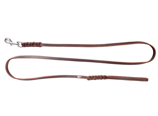 Dingo Smycz skórzana natłuszczana z zaplatanymi elementami 1,2x230cm brązowa