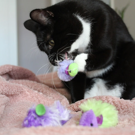 W zestawie są 2 sztuki, więc łatwo rotować zabawki (by kot się nie przyzwyczaił) albo podzielić je między dwa mruczki w domu.