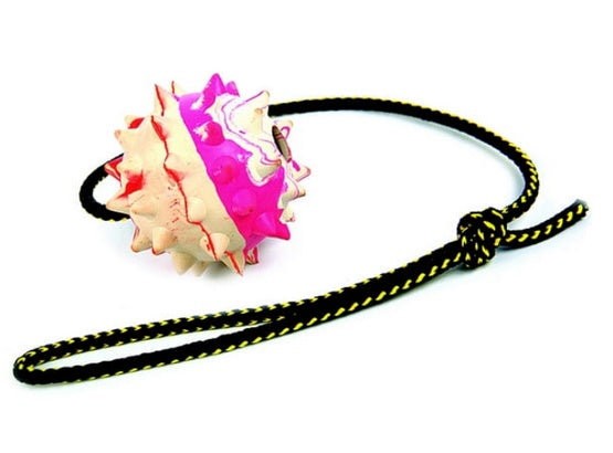 Dingo Zabawka dla psa - Piłka duża gumowa z kolcami na sznurze 60cm
