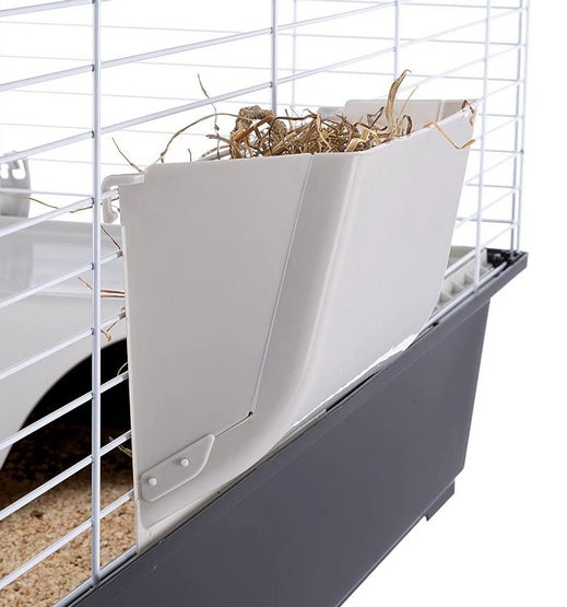Klatka jest przewidziana dla królików lub większych gryzoni, dlatego pozwala odchylić cały sufit - duży otwór daje łatwy dostęp do pupila. Ponadto oddzielana kuweta pozwala również łatwo utrzymać higienę w klatce.
