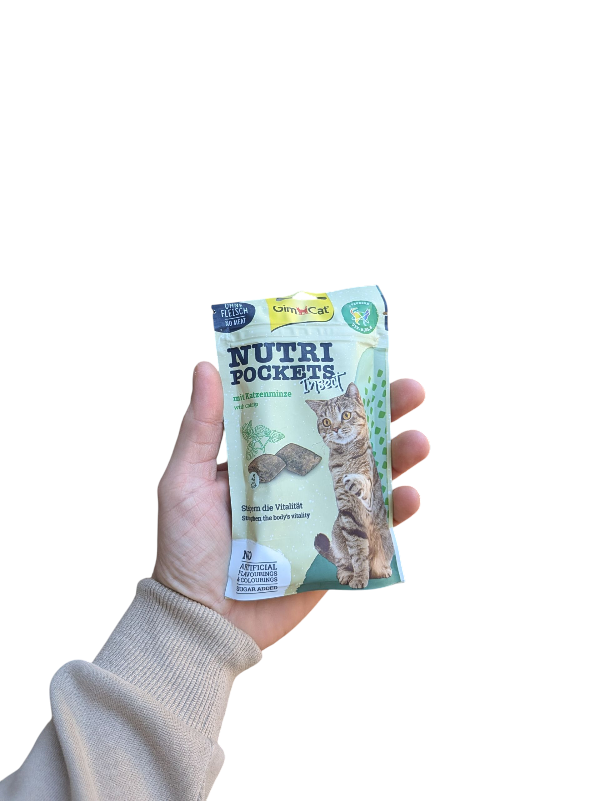 Gimcat Nutri Pockets Insect and Catnip is a tasty and healthy treat for your cat. These crunchy pouches are filled with a fine cream containing insect protein and catnip.