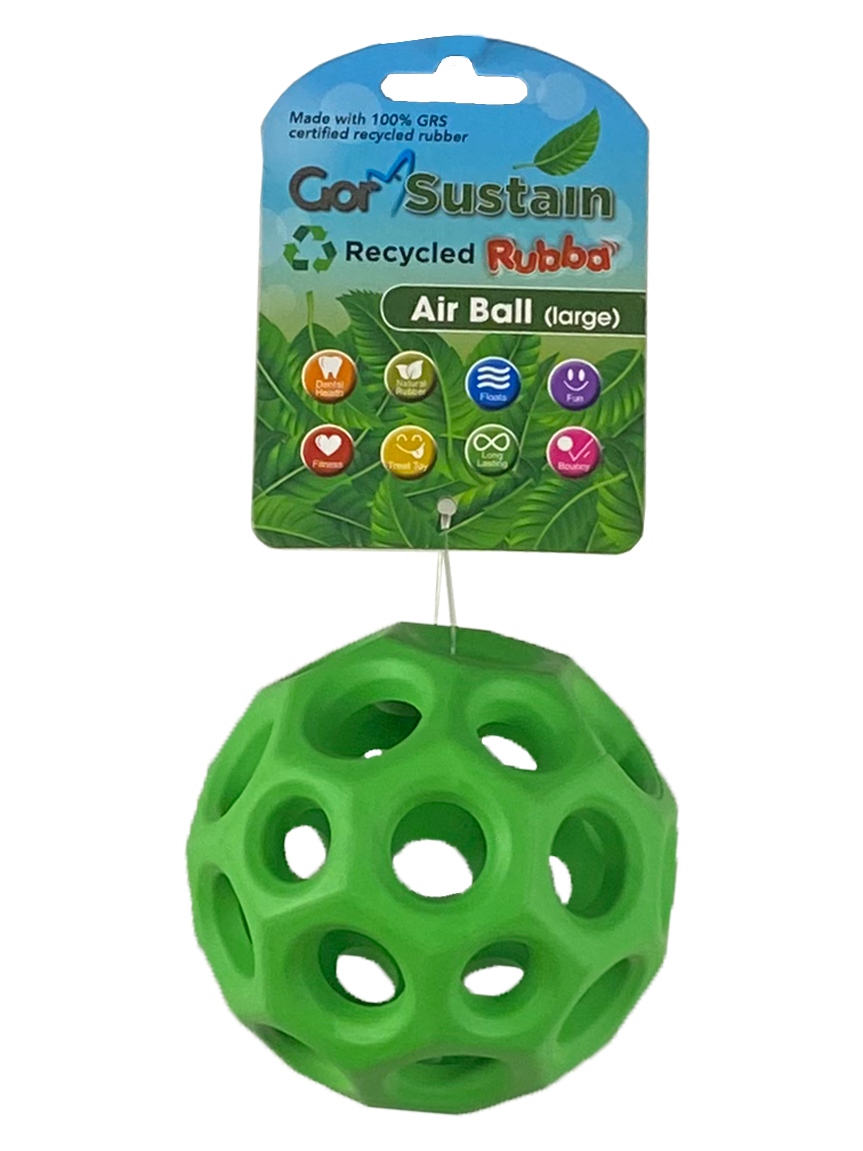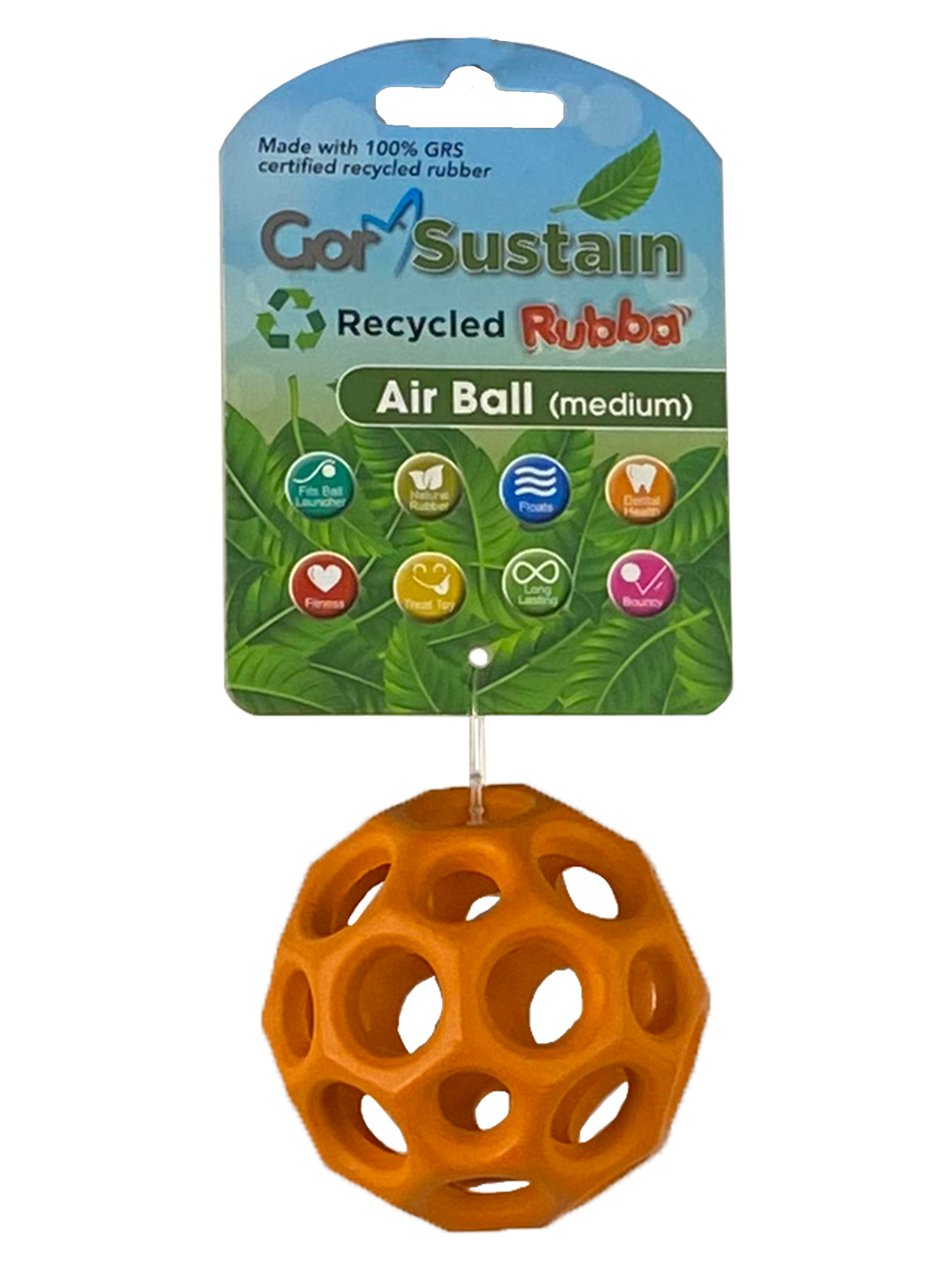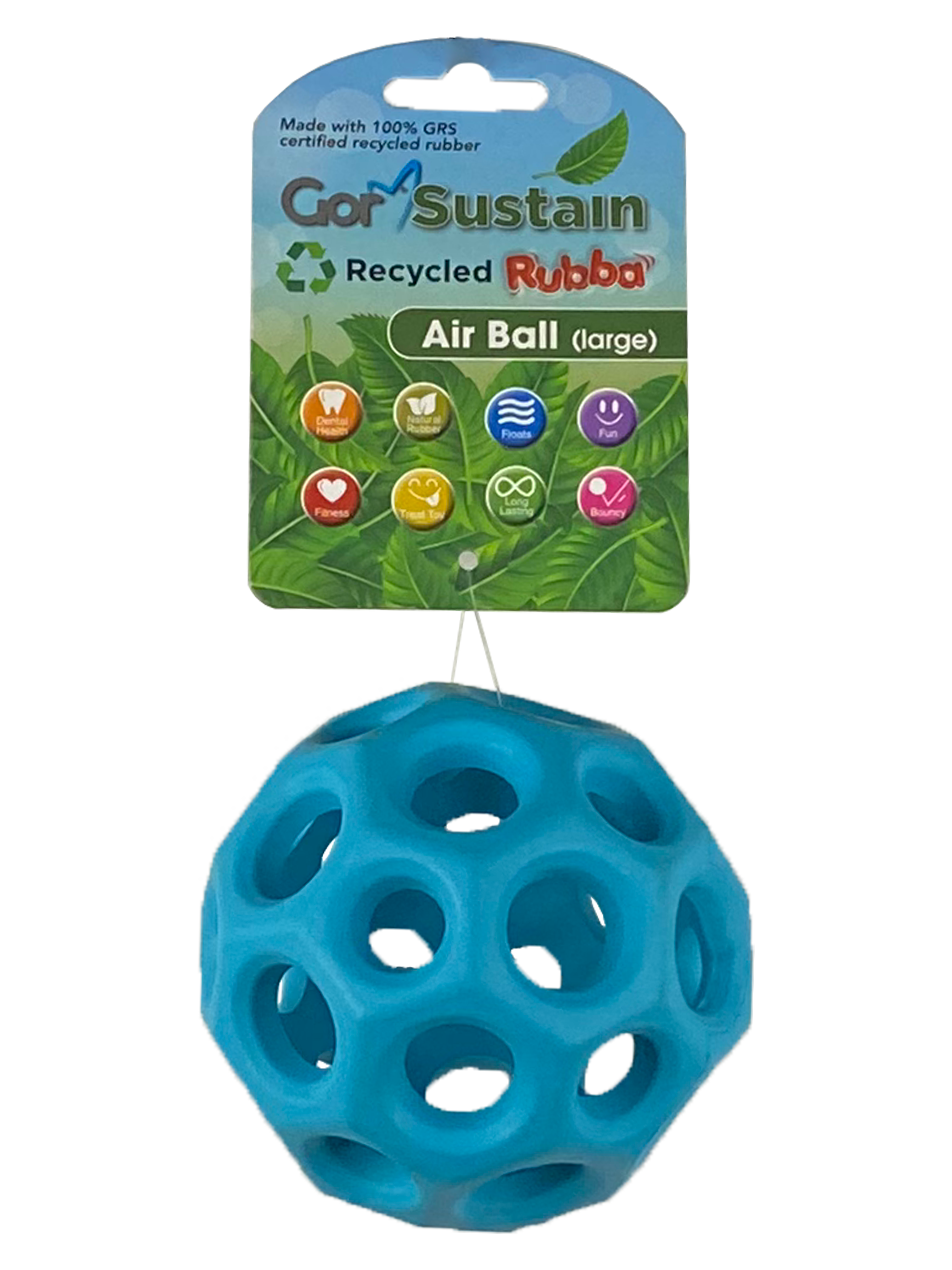 The Gor Sustain Air Ball is the perfect choice for lightweight and bouncy play, combining sustainability with entertainment. Made from 100% GRS-certified recycled rubber, this durable ball is designed for active dogs who love to chase and retrieve.Crafted for interactive outdoor fun, the Air Ball offers exceptional bounce and durability, ensuring endless excitement for you and your pet. Available in vibrant colors, it’s a fun, eco-conscious addition to your dog’s toy collection.Key Features:• Eco-Friendly Material: Made from 100% GRS-certified recycled rubber, promoting sustainability.• Bouncy Design: Ideal for lightweight and energetic outdoor play.• Durable Construction: Built to withstand vigorous play and regular use.• Vibrant Variety: Available in three bold colors to suit your style and your dog’s personality.• Versatile Play: Perfect for fetch games in parks, gardens, or any outdoor setting.