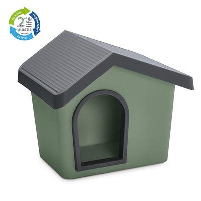 The Imac Zeus 50 Second Life Recycled Green Dog House 53X46X47.5 cm is a plastic dog house made from environmentally friendly, recycled plastic for small dogs and cats.