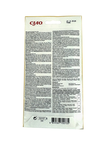 Inaba Churu Chicken/Cheese 4x14 grams is a creamy, moisture-rich, grain-free supplementary cat snack. Cats often tend to drink too little, which can lead to dehydration. Therefore, give your cat this irresistible Churu cat snack! This delicious cat snack consists of a cream in individual pouches and is rich in moisture. Cats love the creamy texture! The delicious recipe is grain-free and contains vitamin E. No artificial preservatives!