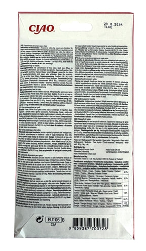 Inaba Churu Tuna/Salmon 4x14 grams is a creamy, moisture-rich, grain-free supplementary cat snack. Cats often tend to drink too little, which can lead to dehydration. Therefore, give your cat this irresistible Churu cat snack! This delicious cat snack consists of a cream in individual pouches and is rich in moisture. Cats love the creamy texture! The delicious recipe is grain-free and contains vitamin E. No artificial preservatives!
