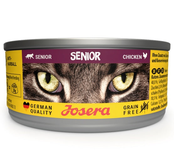 Starsze koty często niechętnie zaglądają do miski z wodą – dlatego mokra karma Josera Senior znakomicie sprawdza się także jako codzienne źródło płynów.