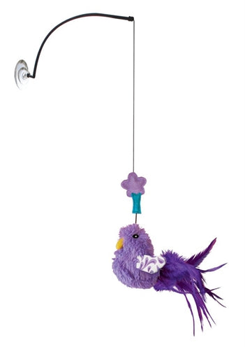 - Cat toy on a stick with suction cup, for attaching to a window, for example.