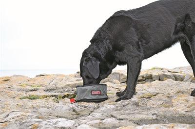 The KONG Collapsible Food/Water Bowl 2 ltr is a foldable dog bowl with a waterproof interior for space-saving storage. A handy bowl that takes up little space on the go and ensures you can always give your dog food and water! This handy bowl has a fabric exterior and a waterproof lining, allowing you to easily unfold it and fill it with water, wet food, or dry food. A zipper allows you to easily reduce the size of the bowl, making it easy to take with you everywhere. The bowl has a carabiner hook so you can attach it to a bag or belt, for example. Made in a tough grey color and featuring the well-known KONG logo.