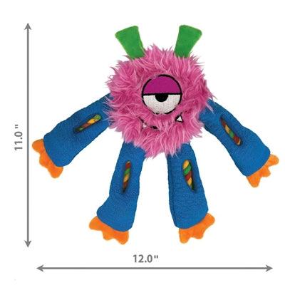 De KONG Sneakerz Knots is een robuust hondenspeeltje, gemaakt van duurzaam tennisschoenmateriaal en een stevig touwskelet. Het pluche hoofd is aan de binnenkant voorzien van een touwknoop, die doorloopt tot in de armen en benen. Dit biedt een uitlaadklep voor passend kauwgedrag. Dit speelgoed biedt jouw hond verschillende structuren en texturen, waardoor het een ultieme combinatie is van kauwplezier, interactief spelen en schudden. De ingebouwde piepers in de benen zorgen voor extra stimulatie en speelplezier. Dankzij de bungelende poten kan je hond het speeltje makkelijk vastpakken en heen en weer slingeren.