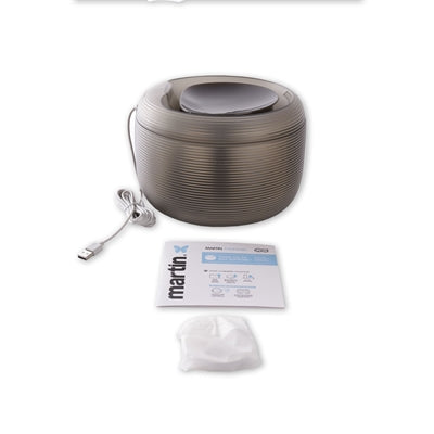 The Martin Pet Fountain for Cats and Small Dogs, Black, 21x21x15 cm, 2.5 liters, continuously circulates and filters your pet's water, keeping it cleaner and fresher than a regular water bowl. The fountain offers 2.5 liters of fresh, filtered water in a beautiful, easy-to-clean design. The playful stream of water encourages your dog or cat to drink more often, and the continuous flow of air makes the water extra rich in oxygen. The filter keeps the water clean and fresh.