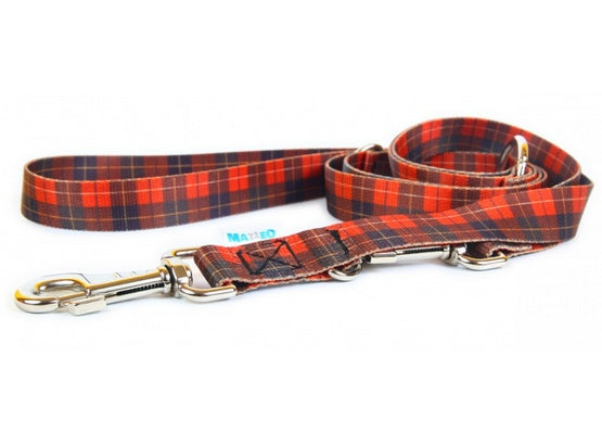 Smycz o kraciastym wzorze utworzonym z krzyżujących się różnej szerokości i barwy pasów, przebiegających w takim samym porządku zarówno wzdłuż osnowy, jak i wątku. To ponadczasowy wzór, który będzie doskonałym wyborem!