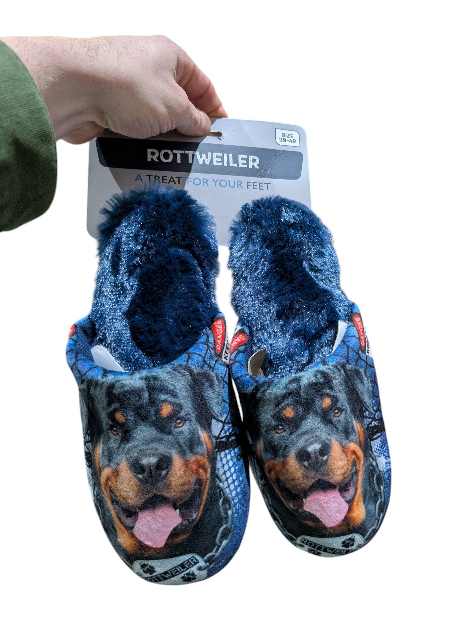 The Rottweiler Dark Blue Slippers (sizes 39-42) are animal-print slippers that offer ultimate warmth and comfort, perfect for cozy moments at home. Made from soft material and equipped with a thick sole, they provide a wonderfully warm experience and a luxurious feel with every step. The charming animal print adds a playful touch to your relaxation time.