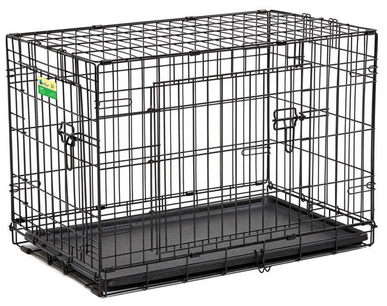Klatka posiada dwie pary drzwi, co ułatwia dostęp do pupila będacego wewnątrz. Drzwi umieszczono na krótkim oraz długim boku klatki, co daje większe możliwości ustawienia i dopasowania przestrzennego klatki. Dodatkowo niski próg umożliwia komfortowe wchodzenie psa do klatki.
