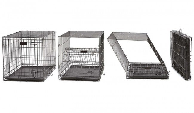 Dwoje drzwi – w krótszym i dłuższym boku gwarantują swobodny dostęp do psa, a średniej wielkości oczka sprawiają, że Twój pies nie będzie czuł się odseparowany podczas pobytu w klatce. Bezpieczeństwo Twojego pupila to po dwa solidne zamki z zabezpieczeniem w drzwiach, zapobiegające niepożądanemu otwarciu klatki, a także zaokrąglone narożniki, dzięki którym Twojemu psu nie stanie się żadna krzywda.