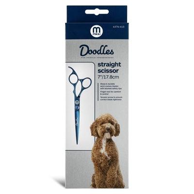The Mikki Doodle Straight Scissors 18 cm are ideal for trimming your doodle's coat at home. Regular trimming prevents matting and keeps your pet clean. With these straight scissors from Mikki, you can do this at home! These scissors are perfectly suited for trimming large areas, such as the body and paws, and creating a neat finish. Brush the coat thoroughly before you start and give your pet breaks during trimming to prevent discomfort.