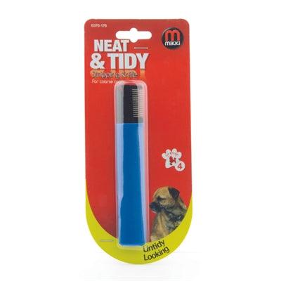 The Mikki Classic Thick Coat Trimming Knife is the ideal tool for thinning out your dog's coat at home. This trimming knife creates the look of a hand-stripped coat, without the pain and discomfort associated with hand stripping. The blade has coarse teeth, ideal for thick, coarse, or long coats. Furthermore, the blade is Teflon-coated to reduce the build-up of static electricity.