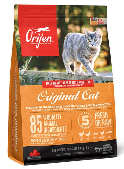 - Jedzenie ORIJEN Original Cat zawiera różnorodność świeżych mięs, podanych w Biologicznie Odpowiednich proporcjach WholePrey, dzięki czemu odżywia Twojego kota, zapewniając mu zdrowie, siłę i witalność.