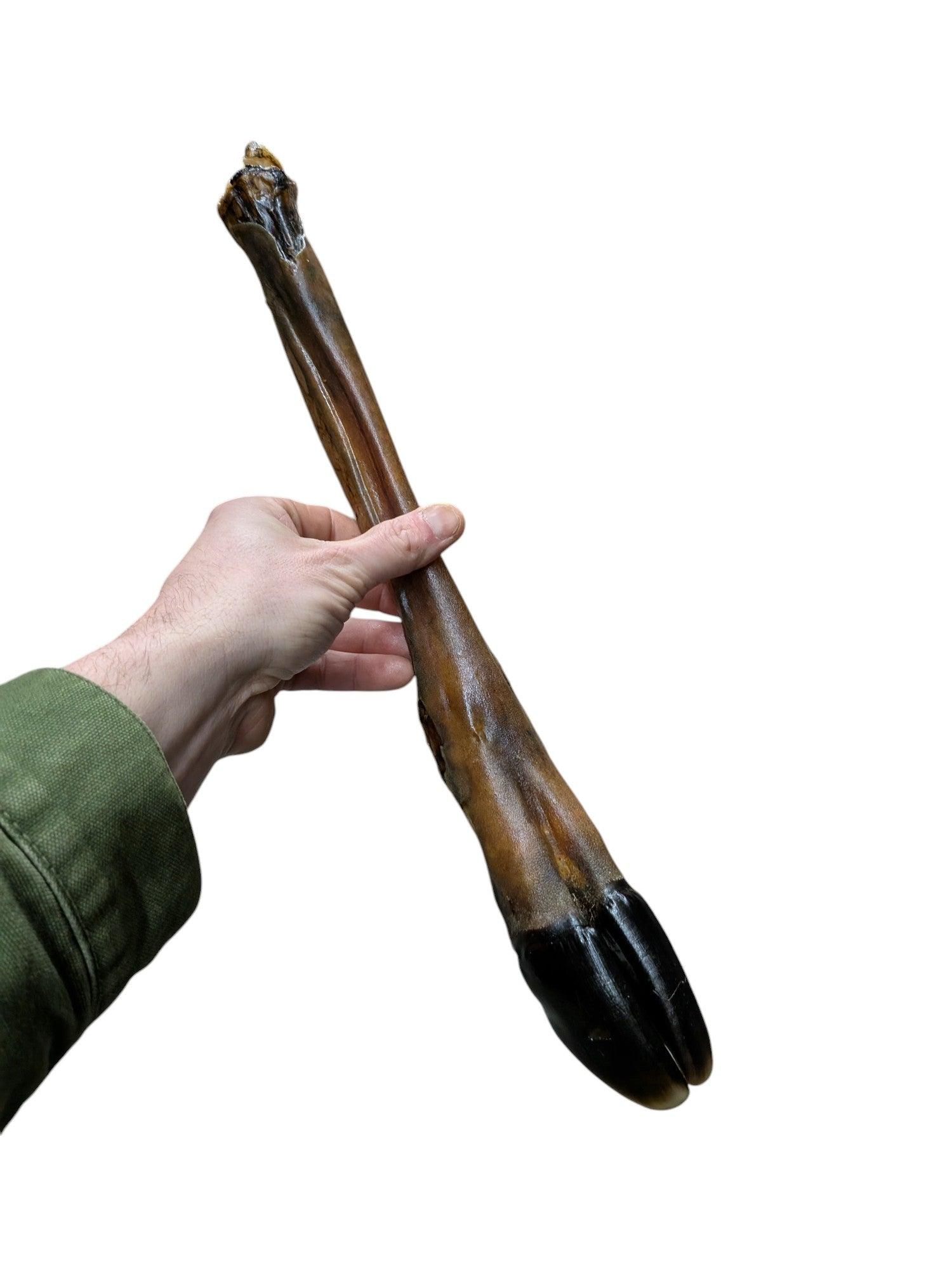 The deer leg is completely natural and hypoallergenic, as it consists solely of deer meat. This makes it an excellent choice for dogs with food allergies or sensitivities to common meats such as chicken or beef. In addition, it's a sturdy chew snack that will keep your dog occupied for a long time.