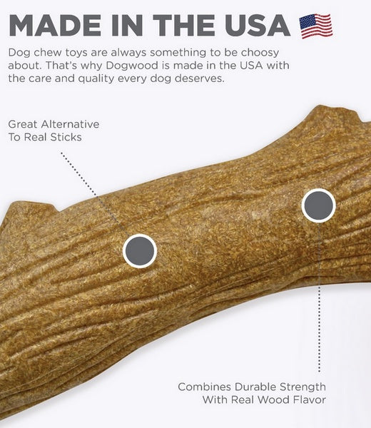 • Połączenie  prawdziwego drewna oraz materiału syntetycznego, podnoszącego wytrzymałość, dzięki czemu patyk jest twardszy i bezpieczniejszy dla czworonoga.
