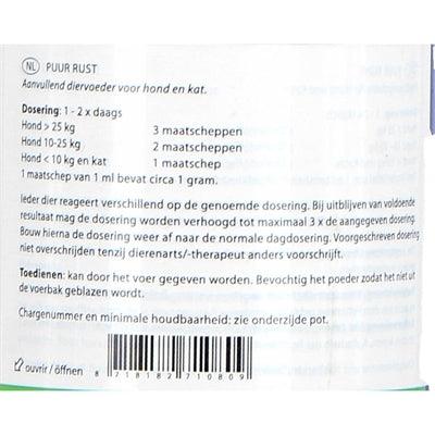 Puur Natuur Tranquil (Calm) Dog and Cat 75gr provides calm and relaxation over a longer period during stressful situations such as fireworks. This supplementary animal food is suitable for dogs and cats.