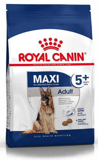 Dla psów ras dużych powyżej 5 roku życia zaleca się karmę ROYAL CANIN® Maxi Adult 5+ . To pełnoporcjowa karma, o recepturze prawidłowo zbilansowanej pod względem składników pokarmowych i opracowanej specjalnie z uwzględnieniem szczególnych potrzeb psów dojrzałych.