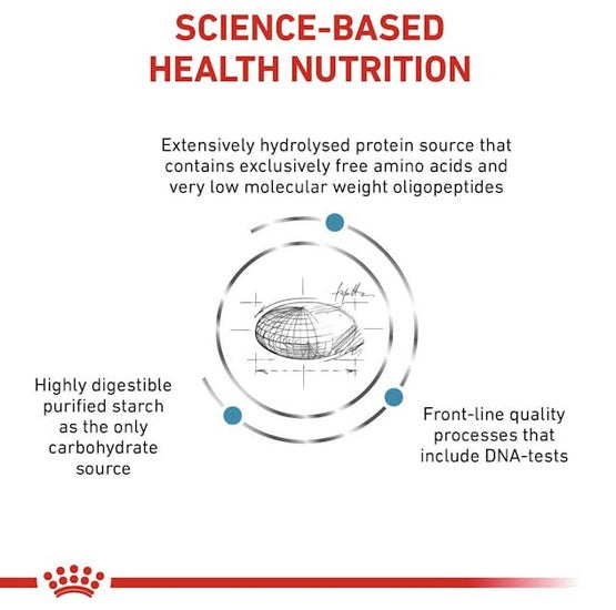 Receptura karmy oparta o pojedyncze źródło białka o znacznym stopniu hydrolizy, zawierające oligopeptydy i wolne aminokwasy, pomaga ograniczyć ryzyko rozwoju niepożądanych reakcji na pokarm. Proces produkcji opracowany tak, aby wykluczyć potencjalne źródła alergenów.