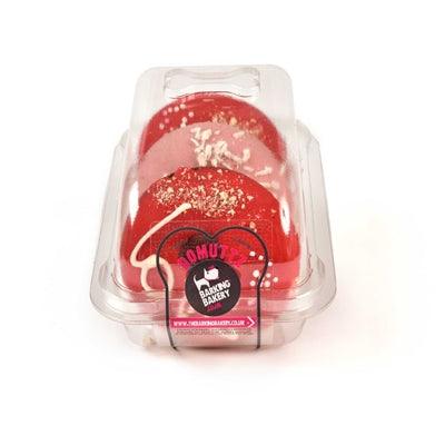 The Barking Bakery Domuttz Heart Assorti is a trio of dog treats shaped like donuts. Celebrating something with your dog? Treat them to these delicious Domuttz! Three vanilla donuts, specially made for dogs from dog-friendly ingredients. They are decorated with a tasty pink and red glaze topping.