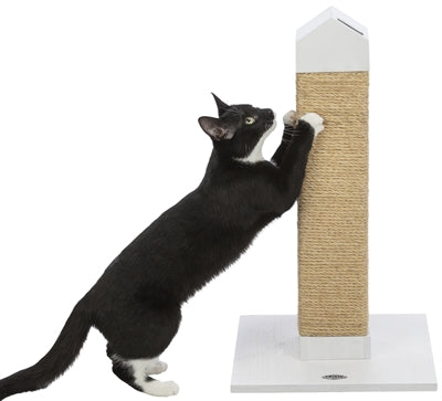 De Trixie Be Nordic Krabstam Iben Wit 60 cm is een mooie krabpaal in strak ontwerp met sisal. Krabben is een natuurlijke behoefte voor de kat. Hiermee markeert de kat zijn territorium en verzorgt hij zijn nagels. Voorkom dat jouw kat krabt aan meubilair met voldoende krabmogelijkheden, zoals deze mooie krabpaal van Trixie. Deze paal is gemaakt van wit gelakt multiplex en is omwonden met sisal. De paal is met zijn 11X11 centimeter afmeting erg stevig en de voet van 34X34 centimeter zorgt ervoor dat de paal stabiel staat. Deze mooie paal hoort thuis in elk kattenhuishouden.