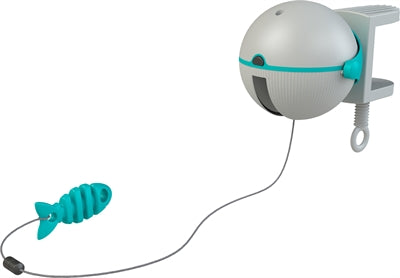 De Trixie Catch It is een automatisch kattenspeeltje dat jouw kat uitdaagt om te jagen, zelfs als je er even niet bent. Het speeltje bestaat uit een visje aan een draad dat onregelmatig op en neer beweegt over een transportband, wat zorgt voor verrassende actie en actief speelgedrag. Dankzij de handige klem bevestig je het eenvoudig aan een tafel, plank of krabpaal met een maximale dikte van 4 cm. Na ongeveer 15 minuten schakelt het speelgoed automatisch uit. Inclusief een extra speeltje als reserve.