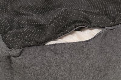 De bekleding is volledig afneembaar, wat het schoonmaken eenvoudig maakt. Dit zorgt ervoor dat de mand langer fris en hygiënisch blijft, zodat jouw hond altijd kan genieten van een comfortabele slaapplek. De neutrale grijze kleur past perfect in verschillende interieurstijlen en maakt deze hondenmand een mooie toevoeging aan je huis.