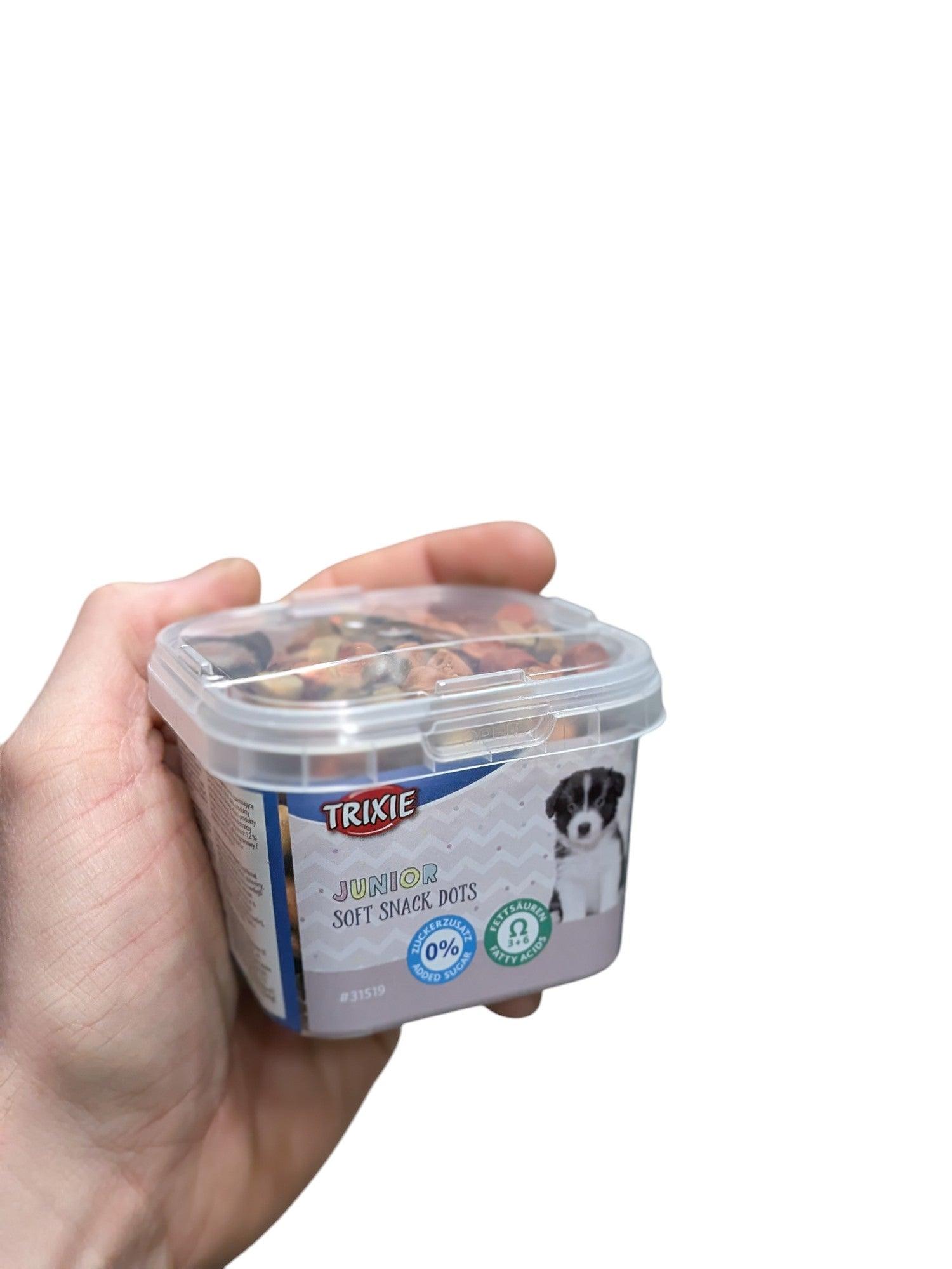 Trixie Junior Soft Snack Bones with Calcium (140g), a complementary pet food for dogs, are delicious, soft reward treats for dogs with chicken, lamb, and salmon. These treats are enriched with calcium for healthy bones and made without added sugars. This makes them the ideal snack for your dog and the perfect reward during training.