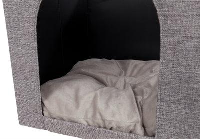Made of sturdy polyester, this cat house is shape-retaining and insulating. The house is finished in grey woven fabric. A great addition for both you and your cat!
