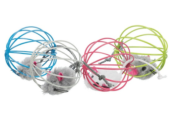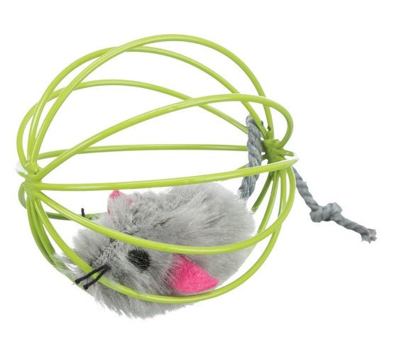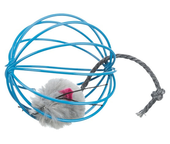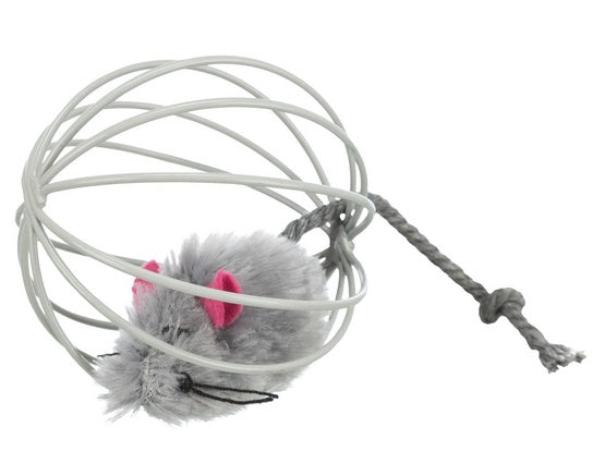 Zabawka dla kota - pluszowa myszka w drucianej piłce.